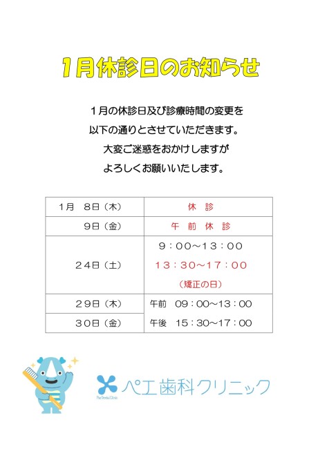 1月の診療時間変更のお知らせについて
